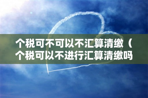 个税可不可以不汇算清缴?小编老师认为这个问题应该可以将其理解为情况有很多种,相关的知识小编老师都会在下述文章中进行阐述的,对你们学习认知这个问题肯定是有所帮助的,建议同学们可以来阅读下述文章学习。