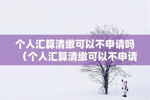 今天给各位分享个人汇算清缴可以不申请吗的知识,同时也会对个人汇算清缴可以不申请吗怎么办进行解释,都是汇算清缴流程中比较重要的知识点。