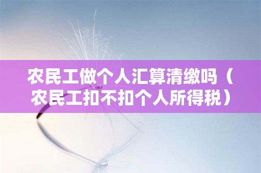 农民工做个人汇算清缴吗?小编老师认为这个问题应该可以将其理解为情况有很多种,相关的知识小编老师都会在下述文章中进行阐述的,对你们学习认知这个问题肯定是有所帮助的,建议同学们可以来阅读下述文章学习。