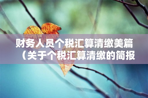 汇算清缴网小编今天要给大家分享的是有关财务人员个税汇算清缴美篇的会计知识,希望对于会计朋友学习关于个税汇算清缴的简报的过程中有帮助。