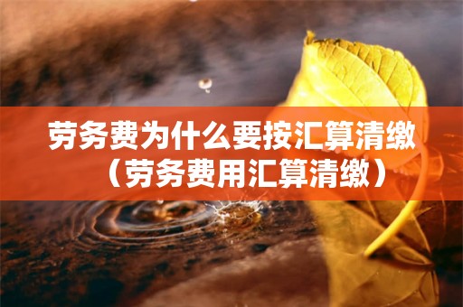劳务费为什么要按汇算清缴?小编老师认为这个问题应该可以将其理解为情况有很多种,相关的知识小编老师都会在下述文章中进行阐述的,对你们学习认知这个问题肯定是有所帮助的,建议同学们可以来阅读下述文章学习。