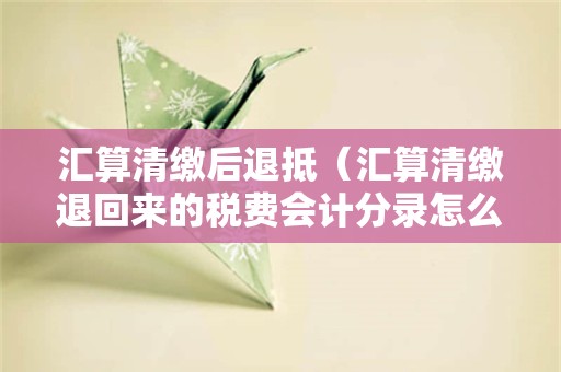 汇算清缴后退抵,我将会在下述文章中进行阐述的,有兴趣的同学们不妨来阅读试试,说不定对你们理解有所启发的。
