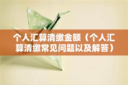个人汇算清缴金额,我将会在下述文章中进行阐述的,有兴趣的同学们不妨来阅读试试,说不定对你们理解有所启发的。