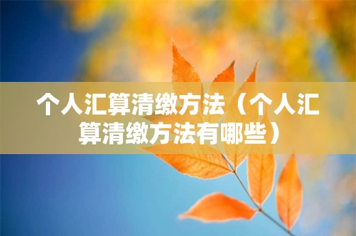 以上详细介绍了个人汇算清缴方法有哪些,也介绍了个人汇算清缴方法,作为一名财务人员,需要特别清楚,个人汇算清缴方法有哪些及相关知识。