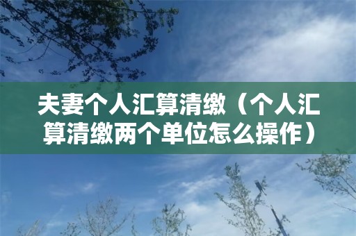 夫妻个人汇算清缴?小编老师认为这个问题应该可以将其理解为情况有很多种,相关的知识小编老师都会在下述文章中进行阐述的,对你们学习认知这个问题肯定是有所帮助的,建议同学们可以来阅读下述文章学习。