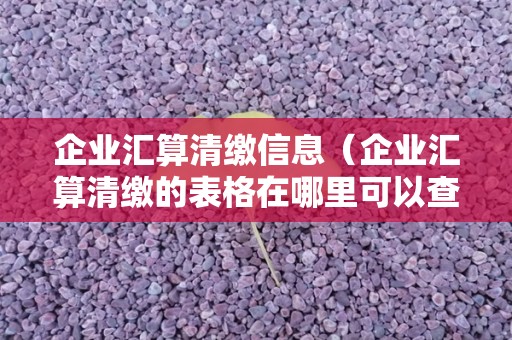 今天给各位分享企业汇算清缴信息的知识,同时也会对企业汇算清缴的表格在哪里可以查询进行解释,都是汇算清缴流程中比较重要的知识点。