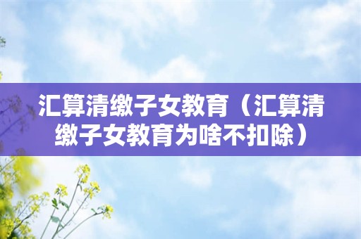 汇算清缴子女教育?本文将从多个方面为你讲解汇算清缴子女教育为啥不扣除,帮助大家更好地运用实操,顺利开展汇算清缴工作。
