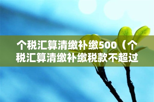 个税汇算清缴补缴500?本文将从多个方面为你讲解个税汇算清缴补缴税款不超过400元,帮助大家更好地运用实操,顺利开展汇算清缴工作。