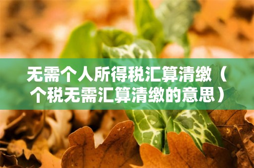 3、如果个人符合上述情况,可以不需要进行个税汇算清缴。
