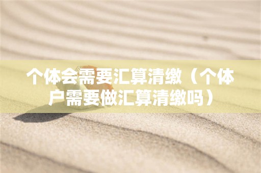 个体会需要汇算清缴?小编老师认为这个问题应该可以将其理解为情况有很多种,相关的知识小编老师都会在下述文章中进行阐述的,对你们学习认知这个问题肯定是有所帮助的,建议同学们可以来阅读下述文章学习。