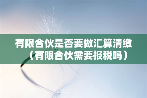 有限合伙是否要做汇算清缴?小编老师认为这个问题应该可以将其理解为情况有很多种,相关的知识小编老师都会在下述文章中进行阐述的,对你们学习认知这个问题肯定是有所帮助的,建议同学们可以来阅读下述文章学习。
