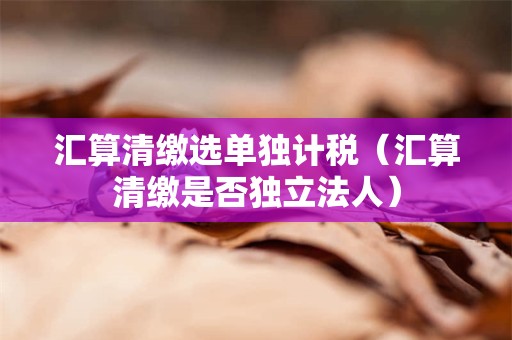 今天给各位分享汇算清缴选单独计税的知识,同时也会对汇算清缴是否独立法人进行解释,都是汇算清缴流程中比较重要的知识点。