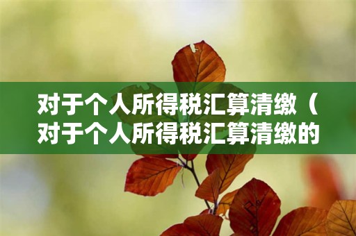 1、个人所得税汇算清缴的范围 按照个人所得税税法规定:非居民个人取得工资、薪金所得,劳务报酬所得,稿酬所得和特许权使用费所得,有扣缴义务人的,由扣缴义务人按月或者按次代扣代缴税款,不办理汇算清缴。