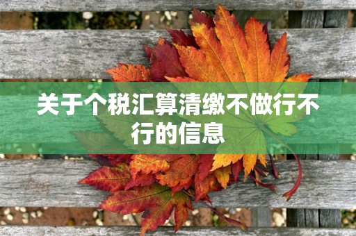 本文小编给大家讲解的是个税汇算清缴不做行不行,以及相关的说明,希望对会计朋友们有所启发和帮助。