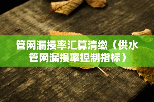管网漏损率汇算清缴?本文将从多个方面为你讲解供水管网漏损率控制指标,帮助大家更好地运用实操,顺利开展汇算清缴工作。